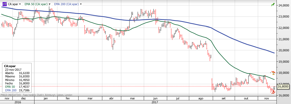 Está com uma resistência nos 19.60 EUR (mais coisa menos coisa).