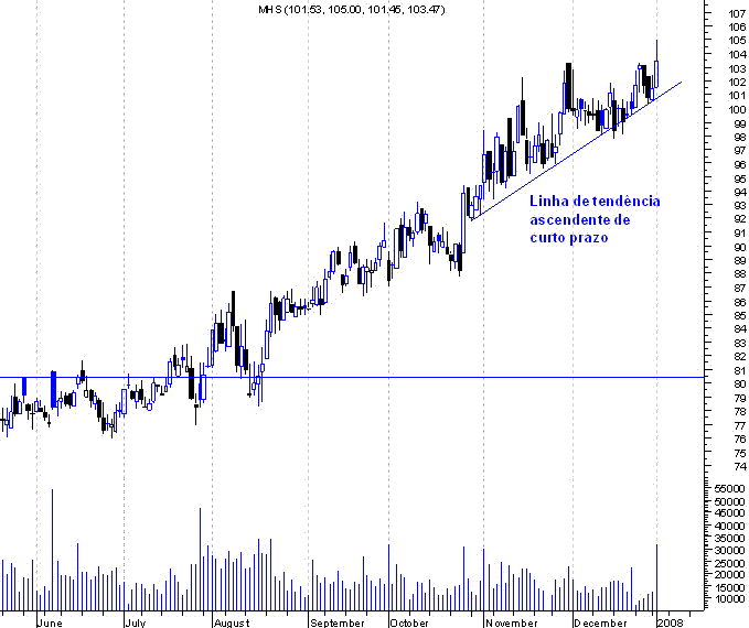 A MHS continua a tentar resistir à quebra da sua Linha de Tendência ascendente. Pessoalmente, continuo "bullish" no papel até que esta linha seja quebrada consistentemente em conjunto com a sua zona de suporte entre os 101,8 e os 103,3. Deixo os gráficos actualizados.