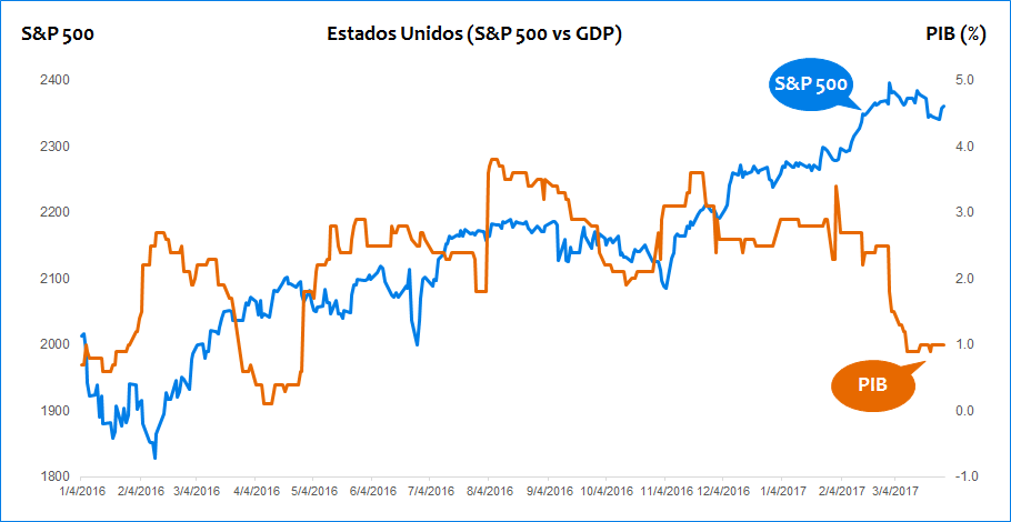 Será que a divergência entre o crescimento da economia e o principal índice norte-americano, o S&P 500, irá continuar?