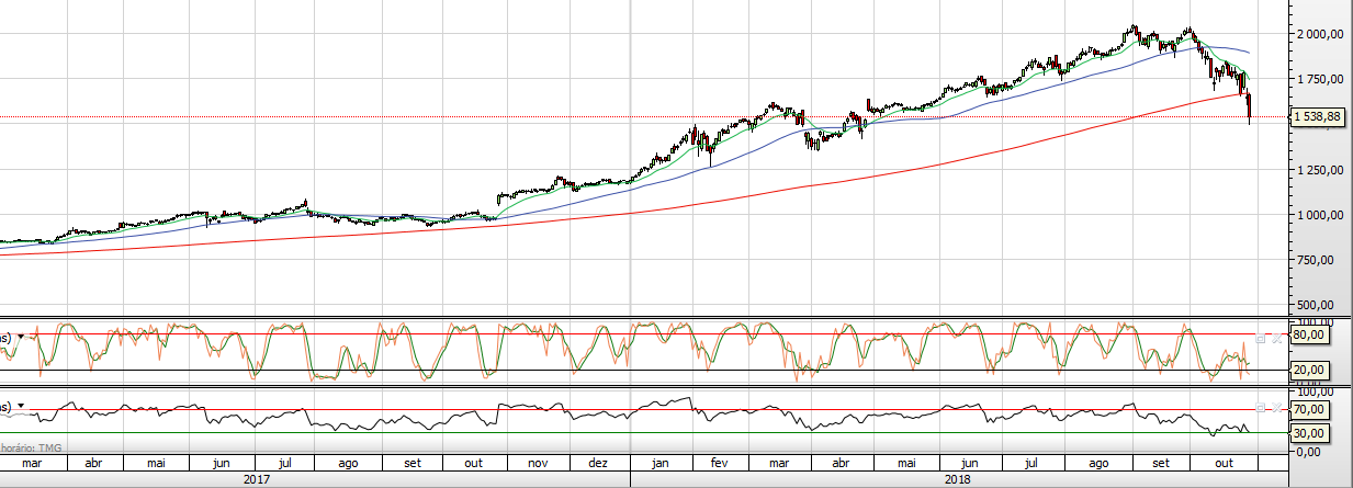 Estavam as 3 cotadas já com recuos elevados em relação aos máximos e já abaixo das MM200 .