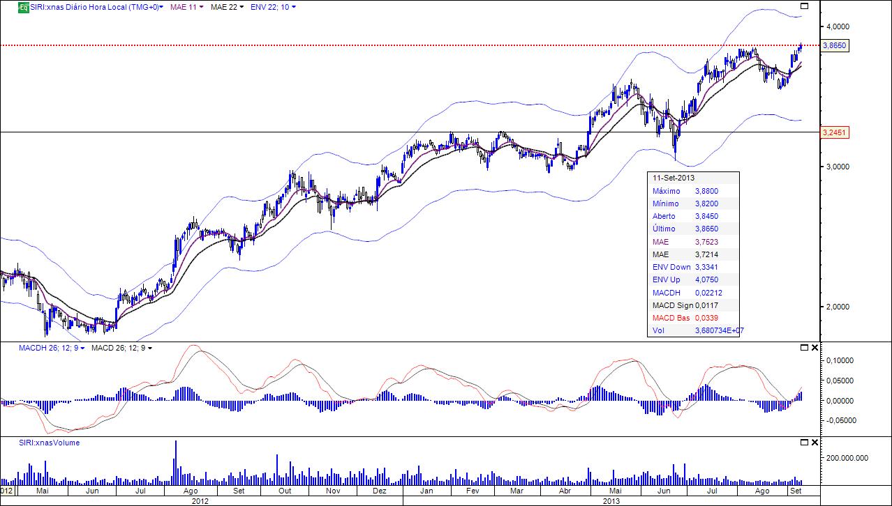 A SIRI continua a apresentar um perfil técnico bullish e na passada 6ªfeira reforçou esse aspecto com uma forte subida de 3% quando o mercado caía a pique. Em termos técnicos o título continua muito apetecível e na minha opinião, acredito que o caminho da SIRI continuará a ser para cima. Resistências 2.97 suportes imedaitos 2.8-2.78