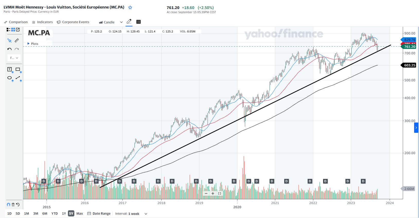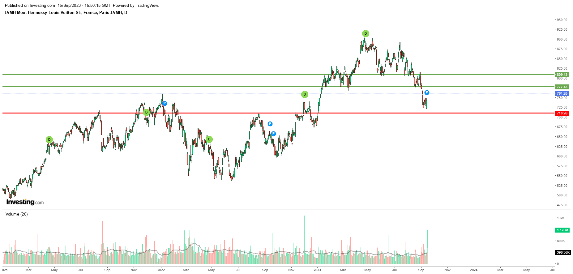 LVMH (semanal), tem um gráfico incrivel.