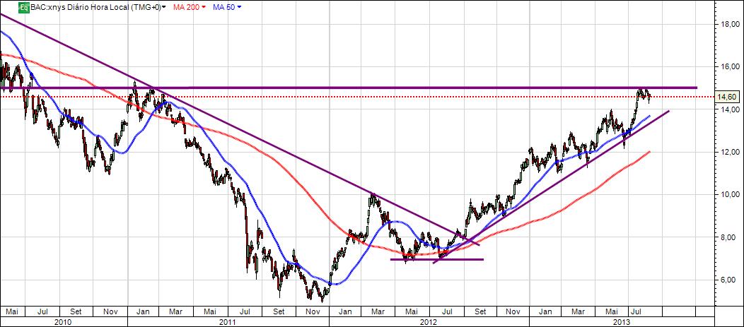 É provavel que o BAC vá andar mais uns tempos abaixo da resistência dos 15, obviamente bem delineada.