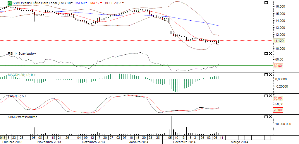A tendência descendente prevalece desde Março de 2011 e ainda não houve sinais claros de inversão, contudo no final de 2012 formou o que parece ser uma ilha reversiva (gap descendente seguido de gap ascendente sobre o mesmo intervalo de preços), o que configura uma possível inversão para alta.
