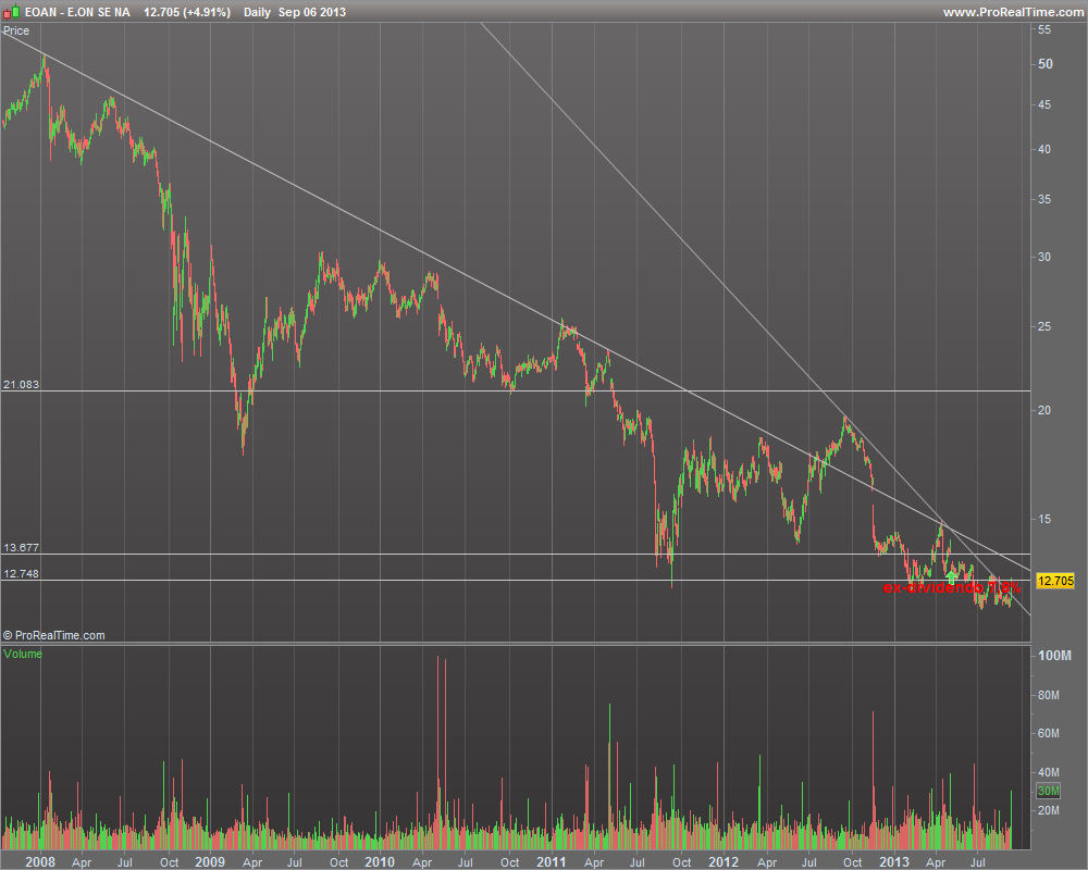Alguem pode fazer uma analise tecnica para esta menina que, do ponto de vista fundamental, se encontra ao " desbarato". Grande empresa , endividamento reduzido, forte peso de actividades reguladas e a ser massacrada pela desastrosa politica energética da sra merkl. Até quando...............?!