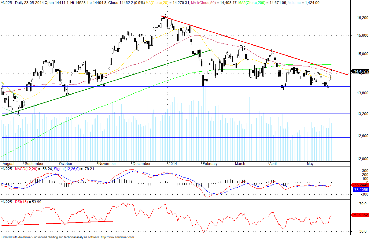 A nossa preferência: Posições longas acima de 14090 com metas a 14550 & 14650 em extensão.
