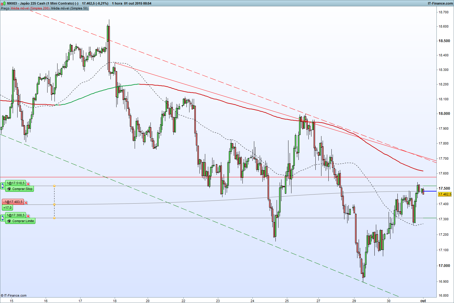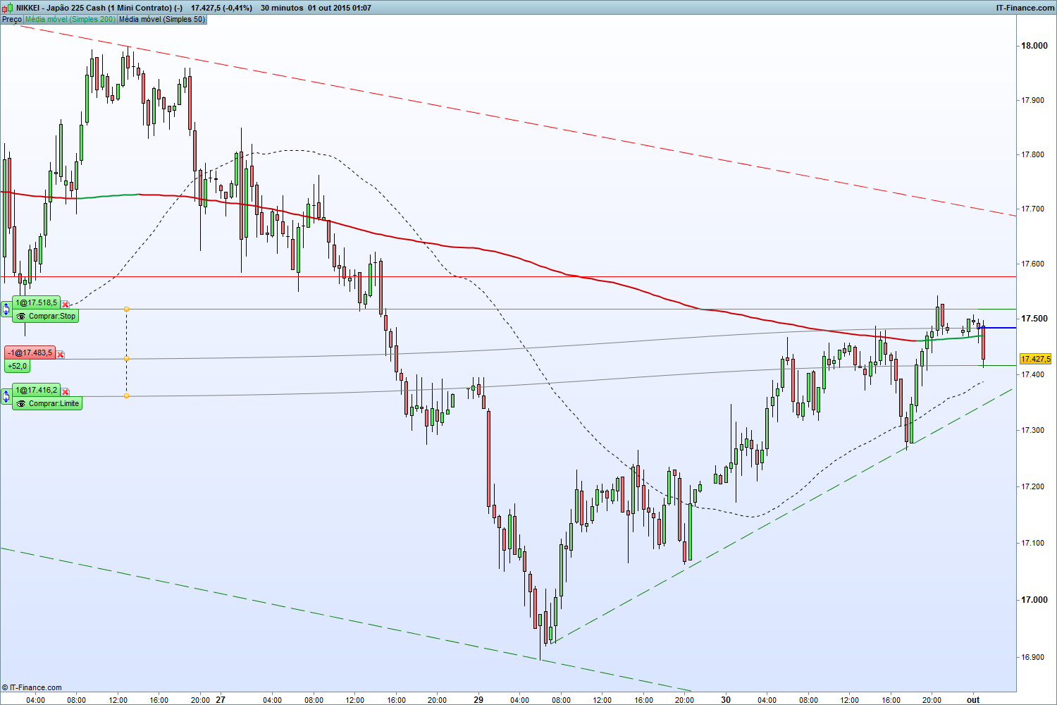Uma vez que voltou ao ponto onde tinha entrado na posição anterior, nova reentrada nos 17472 com os stops as mesmas distancias.