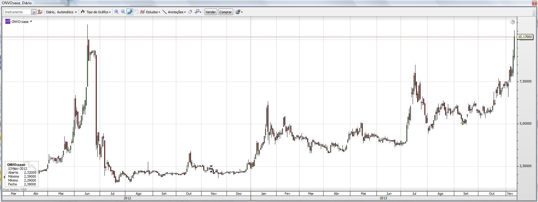 Dos 4 títulos de empresas com 100% Revenue de 3d Prining (Organovo, 3DSystems, Stratasys e TheExone), apesar de estarem todos com excelentes valorizações, a Organovo destaca-se.