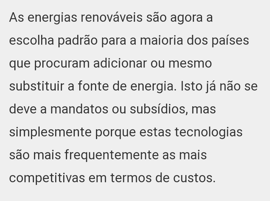 Isto é algo que estou cansado de repetir. Agora, um Relatório da responsabilidade da Bloomberg NEF dá conta disso mesmo. De algo que era público, notório e manifesto: as energias renováveis crescem por serem as mais baratas de todas. E a energia solar fotovoltaica cresce de forma frenética por ter custos de produção tipo custos da uva mijona.
