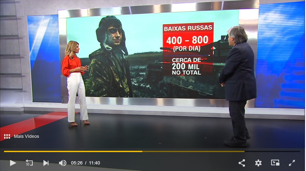 Desde o início da guerra na Ucrânia, o exército russo já terá tido cerca de 200 mil baixas, entre mortos, feridos e desaparecidos. O jornalista da CNN Portugal Rolando Santos avisa que se trata de "uma estimativa", mas sublinha que "pessoas muito próximas de Putin já assumem a dimensão destas baixas"