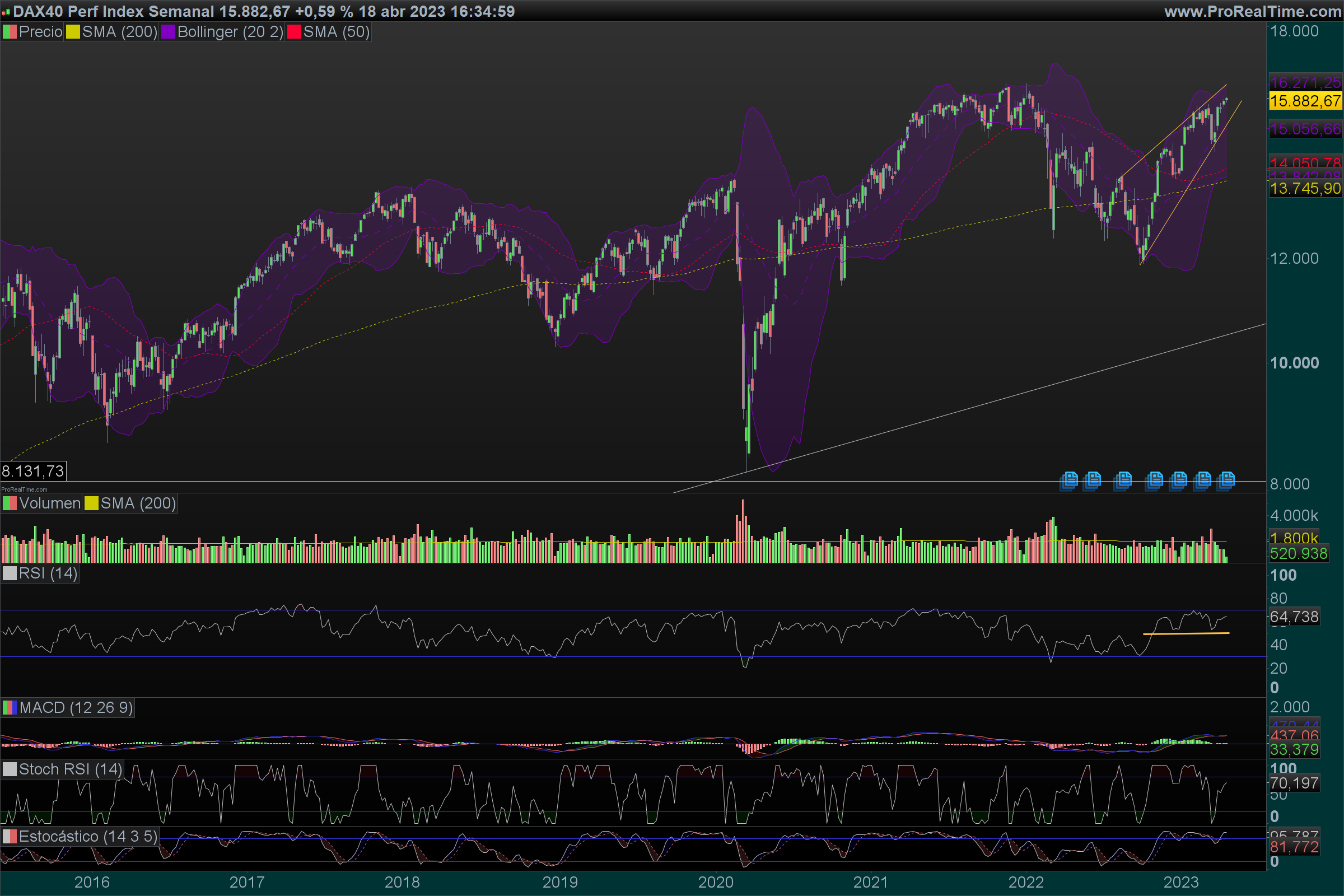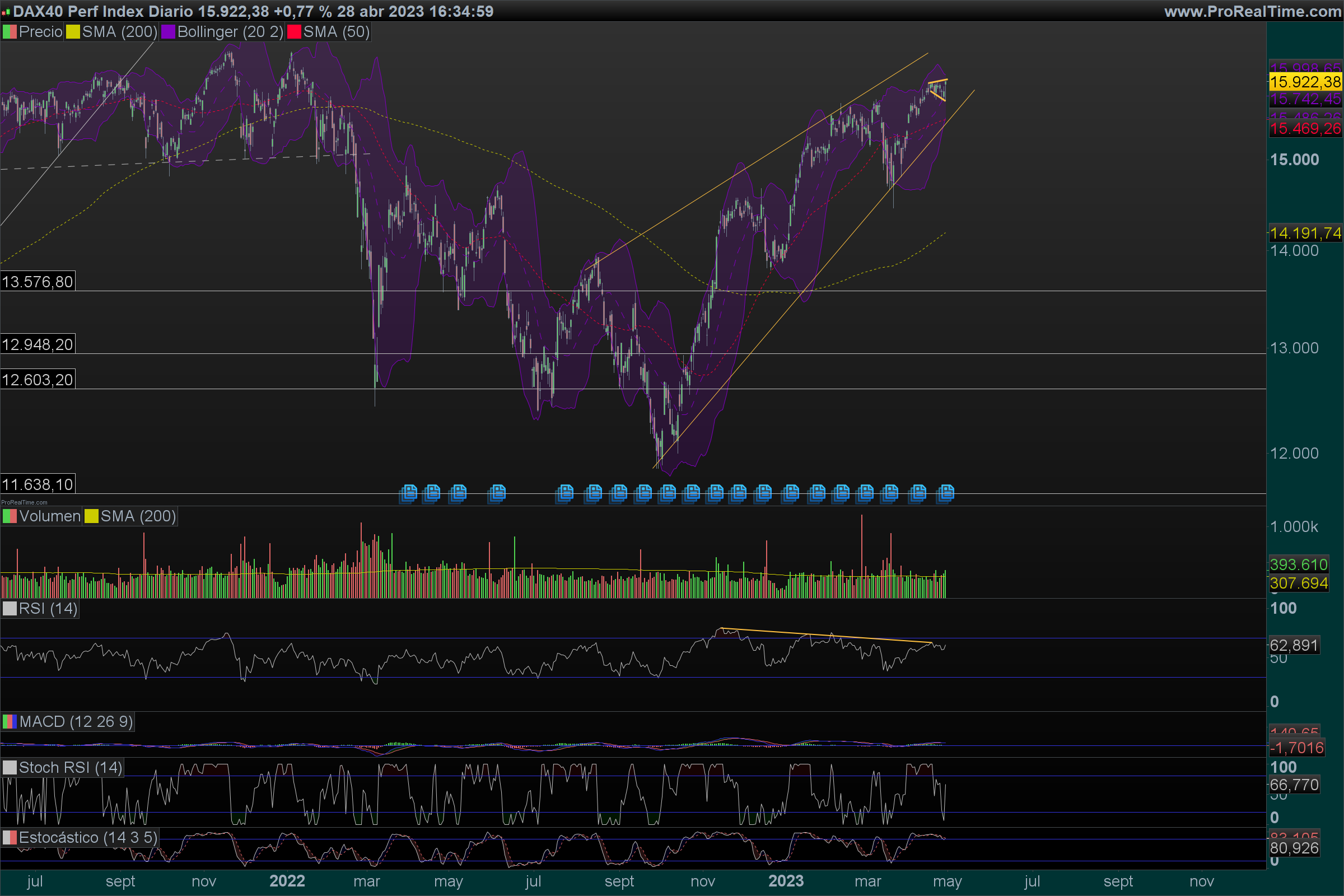 Os juros soberanos estão a voltar às subidas. A inflação da eurozona em Abril foi de 7%, a subir de 6.9% em Março.. a energia já não desce mais.. e agora vem o consumo do Verão. BCE também vai ter que voltar a subir. Duvido que o DAX tenha força para mto mais.