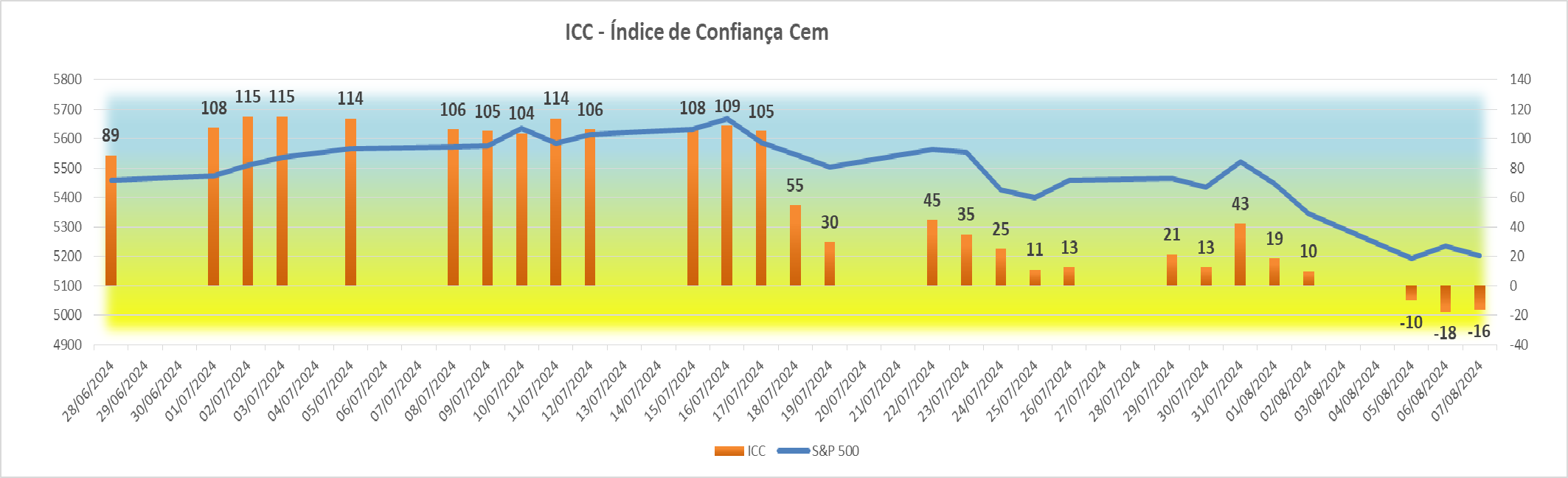 Esta subida agradável registada na sessão americana fez com que houvesse igualmente uma subida bem simpática no índice ICC, fazendo ascender o seu valor de +4 para +34 pontos.