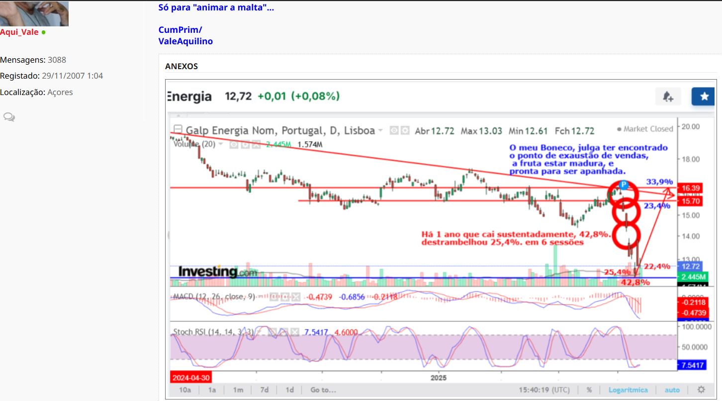 Esquinas3 Escreveu:Após tantas e tão violentas quedas seguidas, a Galp não estará a pedir uma entradazinha ? e saída no dia seguinte, por exemplo? ela vai ter que reagir....