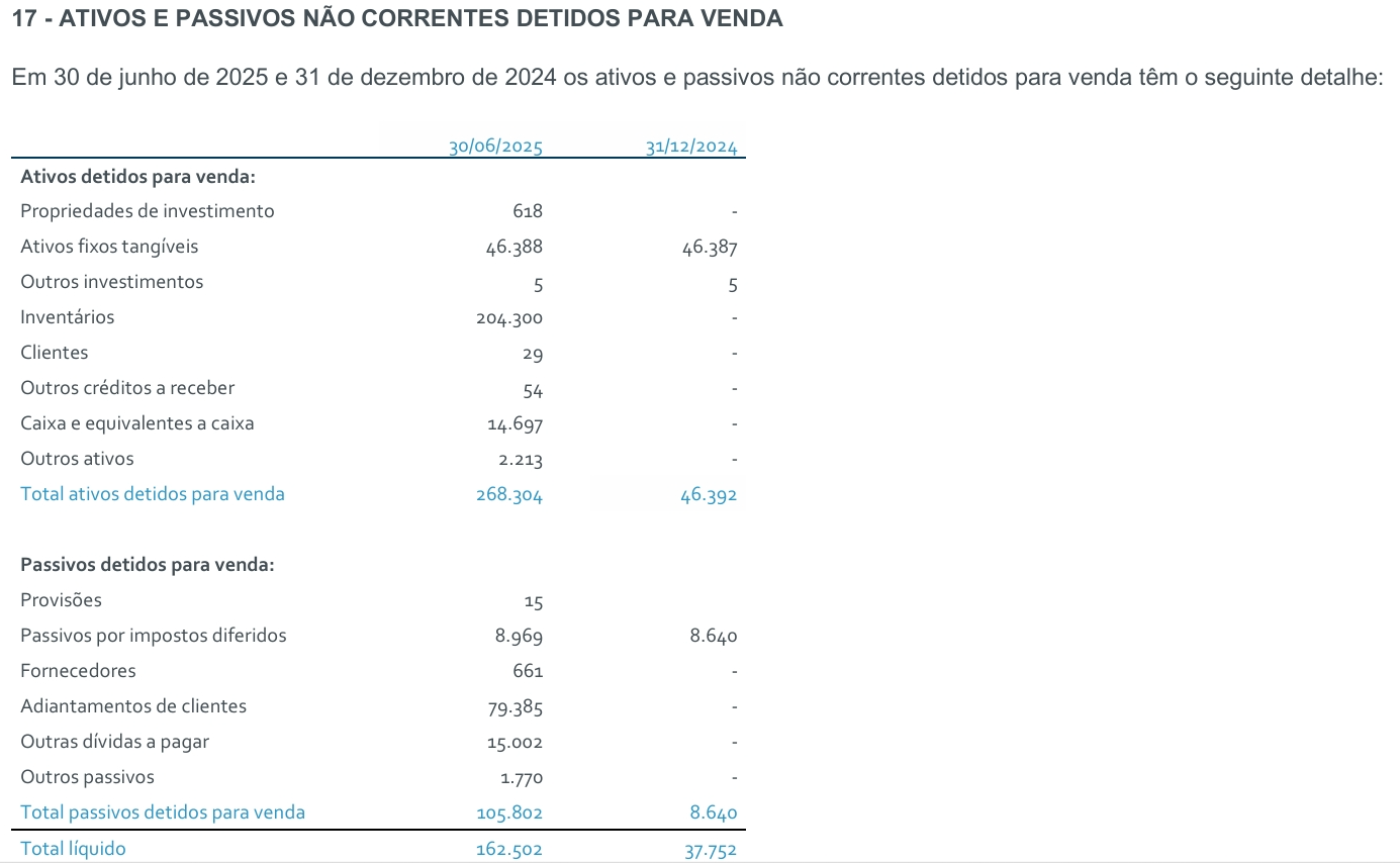 "Em 30 de junho de 2025 estão classificados como “Ativos Não Correntes Detidos para Venda” os ativos das entidades que serão