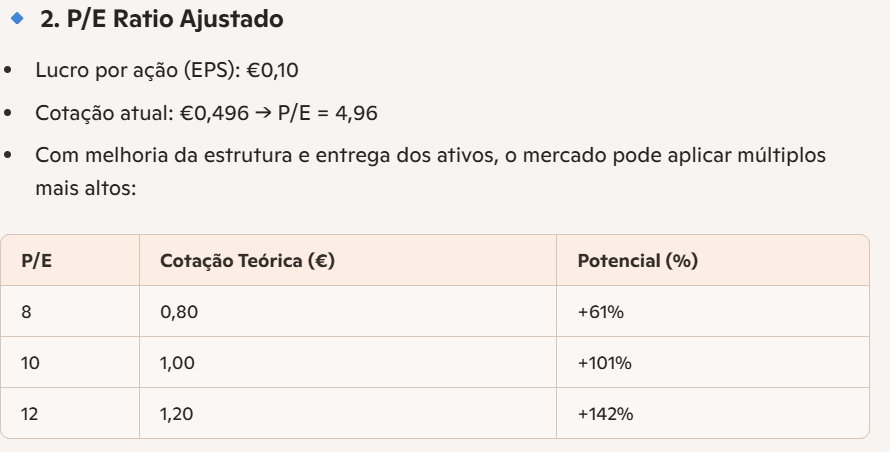 Com múltiplos ajustados, a ação pode atingir €1,00 ou mais, especialmente se os resultados do 2º semestre confirmarem a tendência.