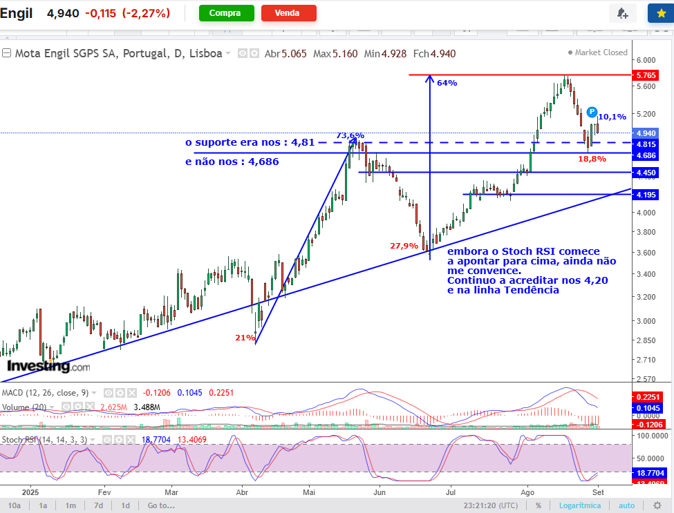 Pois bem, o último impulso da MOTA, foi de 40%, e o anterior foi de 24%. Se aplicares essas % aos 4,686€ (onde inverteu a correção), encontras os valores que eu projetei.