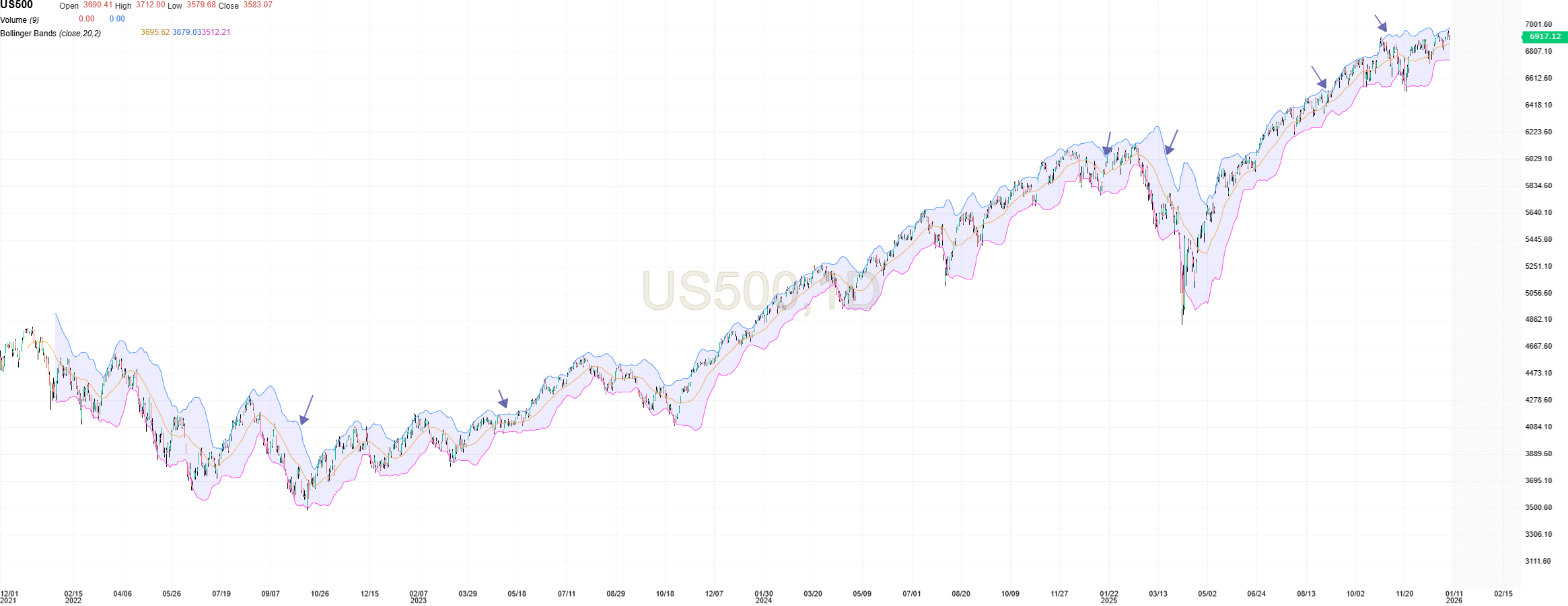 Interessante, olhando para o SP500 diria que não há grande correlação entre volatilidade e tendência. Isto a olho de carpinteiro.