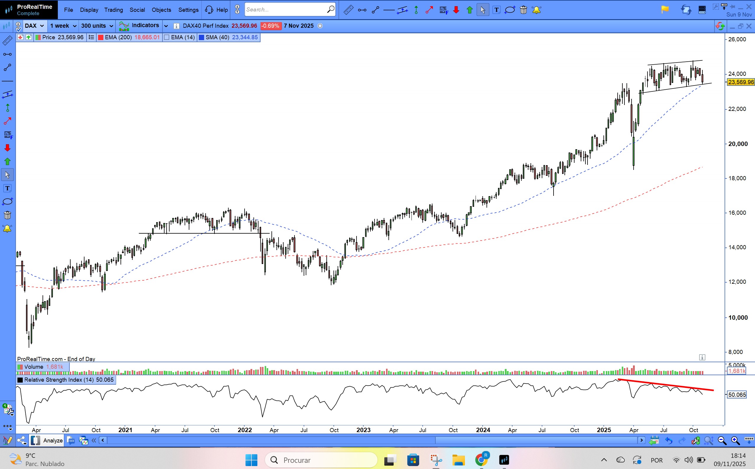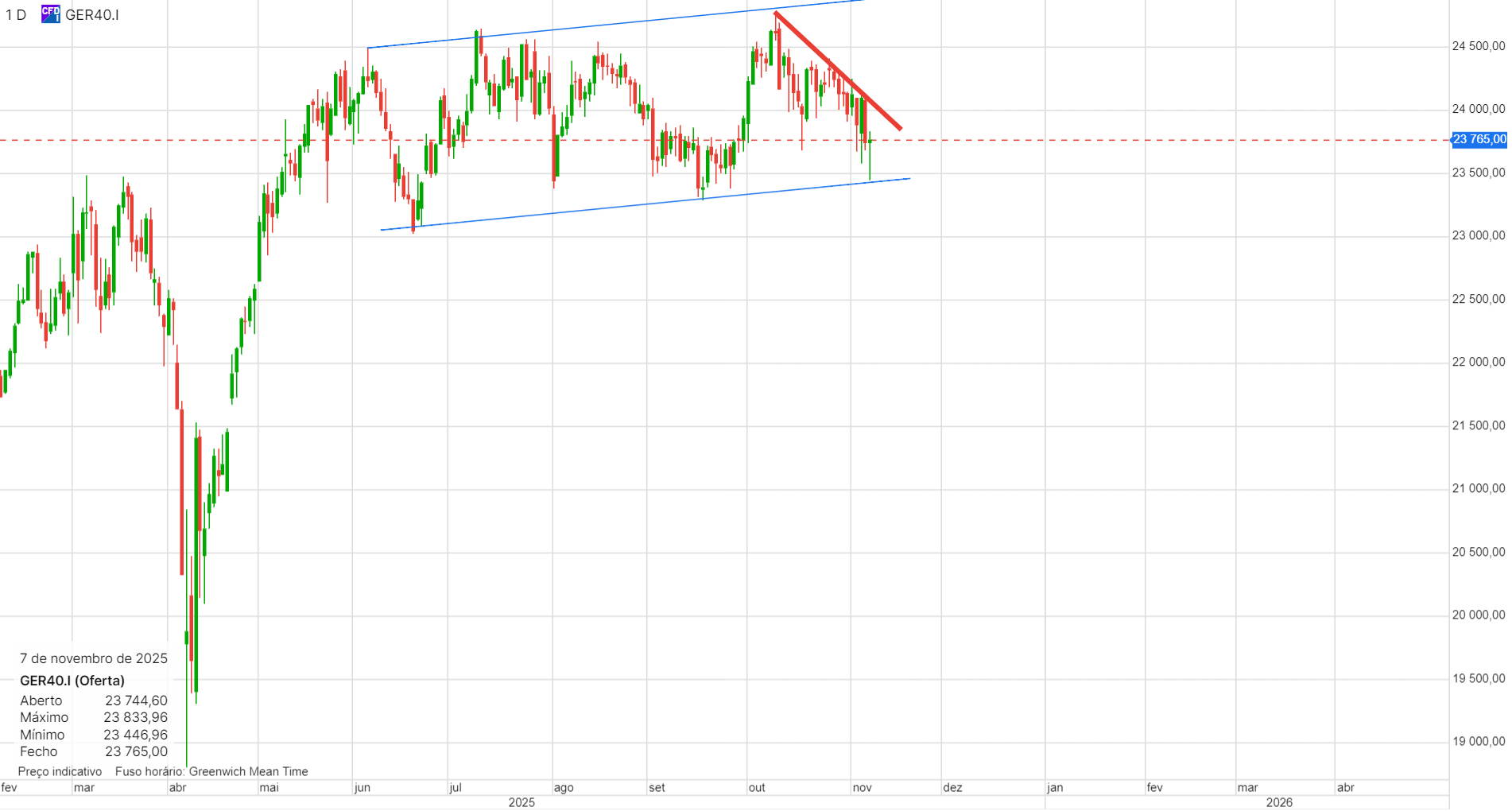 O Dax anda agora neste canal ligeiramente descendente e sexta era dia de meter uns curtos. Não o fiz, e não tenho posições.