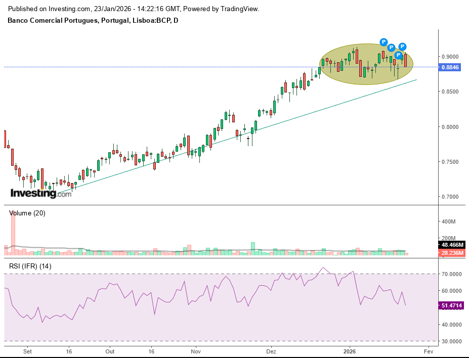 Acredito que o BCP irá atingir o 1€ e até ultrapassar mas para já fico a assistir ao jogo da bancada a aguardar por uma correcção dos mercados.