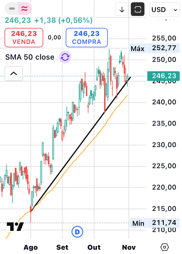 O S&P tocou tanto na linha como na média móvel, que podem funcionar como suporte, e acho que pode recuperar.