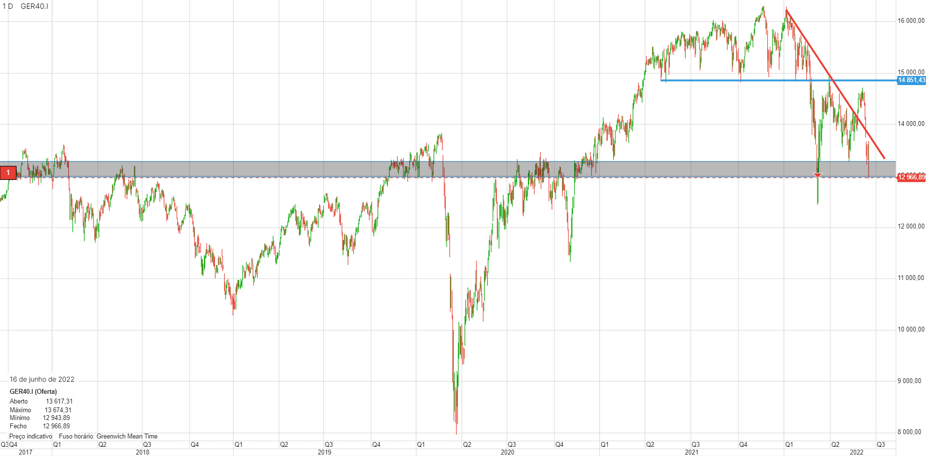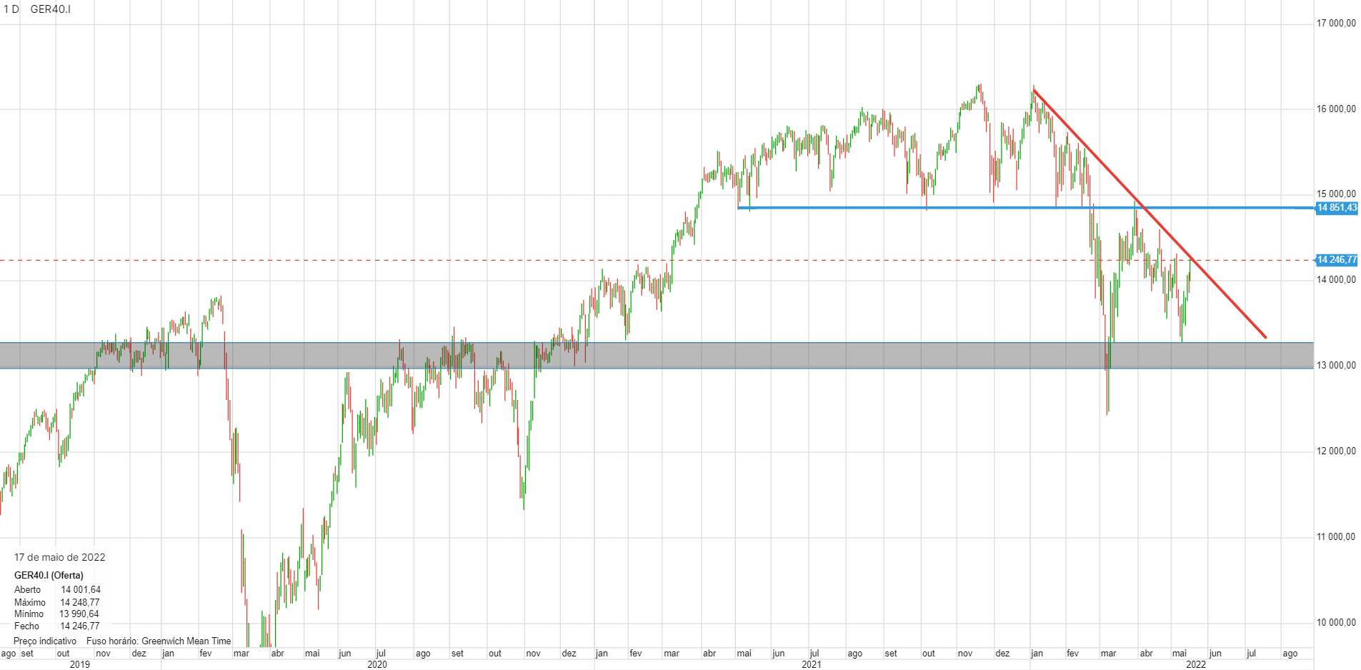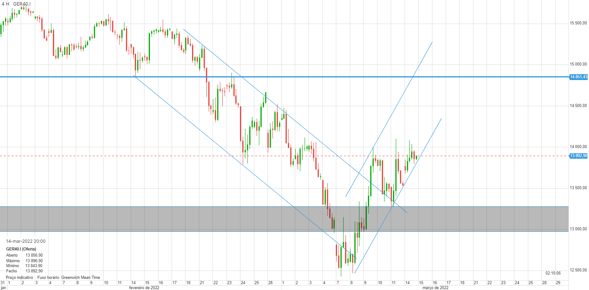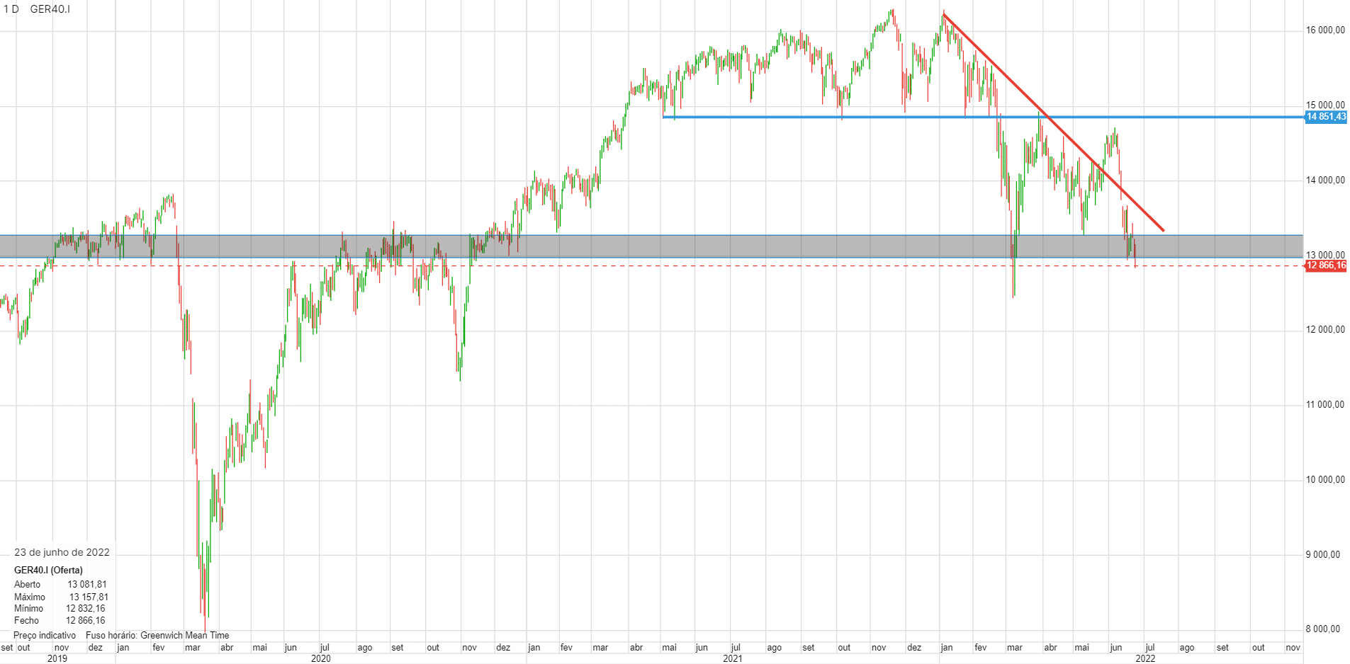 Este é o 3º toque na zona dos 13000, que foi onde o indice andou desde 2017. No Dax, prognósticos só no fim do jogo.