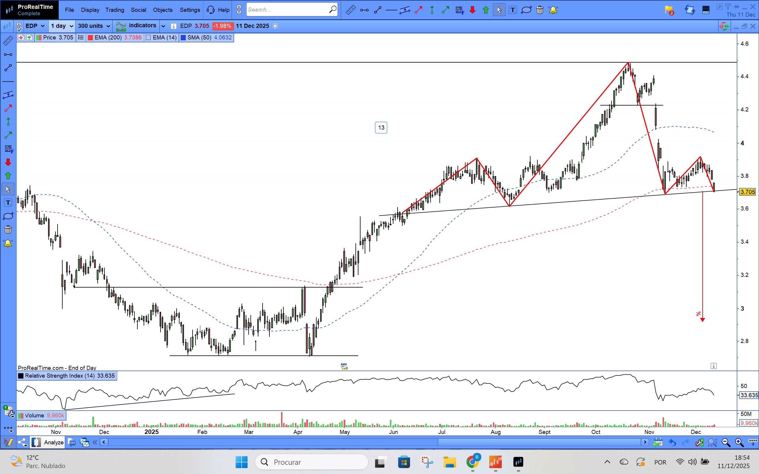 O grafico nao esta bonito para a EDP, se perder os 3,7 pode activar um H&S