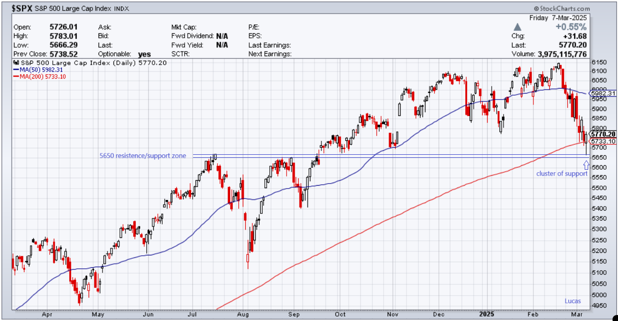 depois do pullback das 2 últimas semanas o spx encontra-se a testar o importante cluster de suportes constituido pela média móvel dos 200 dias e pela zona de resisência/suporte dos 5650 pts.