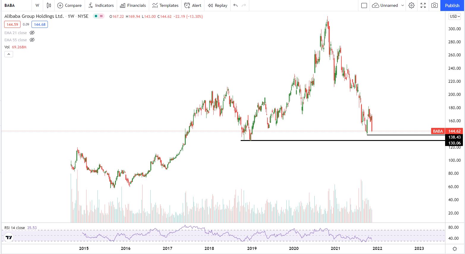 depois de invalidar aquele que parecia ser um padrão de inversão inverse h&s que estaria a construir a alibaba veio testar novamente a zona de suporte dos $130-$140.