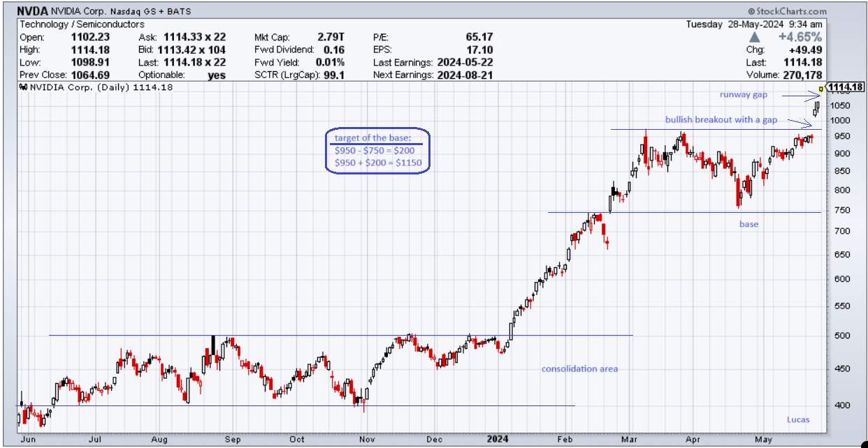 depois do bullish breakout da base que esteve a construir nos últimos 2 meses a nvidia tem como próximo target os $1150.