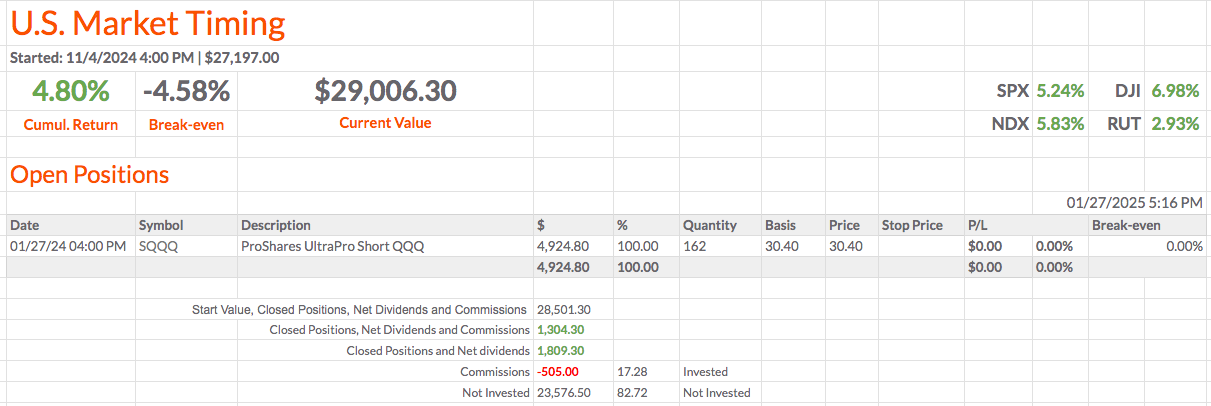 Vou apenas fechar a posição do SQQQ.