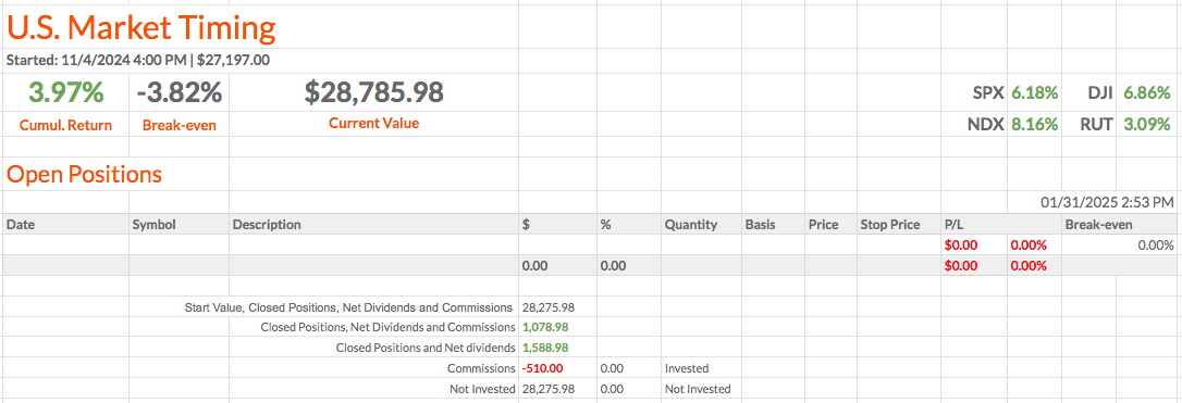Últimos Sinais de Negociação para o Próximo Fecho - US Market Timing