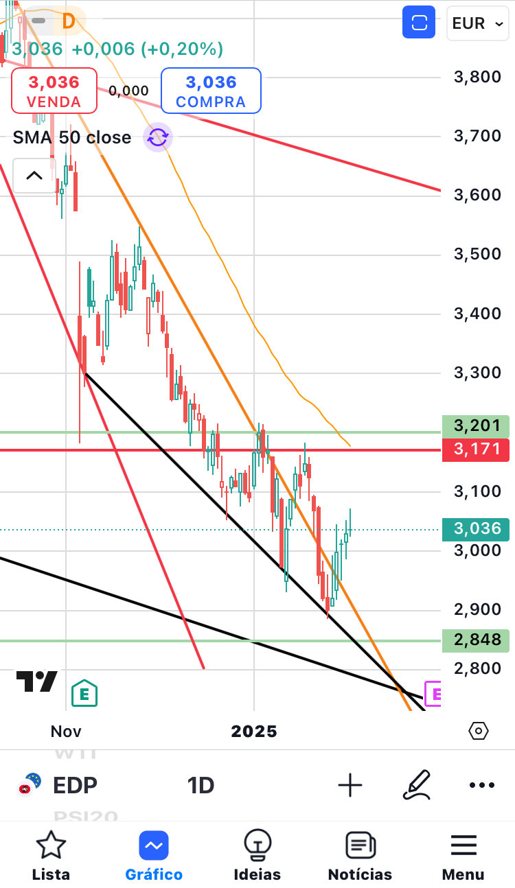 Tanto a EDP como a EDPR reagiram à mesma linha de suporte, mas, neste momento, tenho posições curtas em índices e, enquanto achar que os índices podem descer, não vou estar otimista em relação a nenhuma ação.