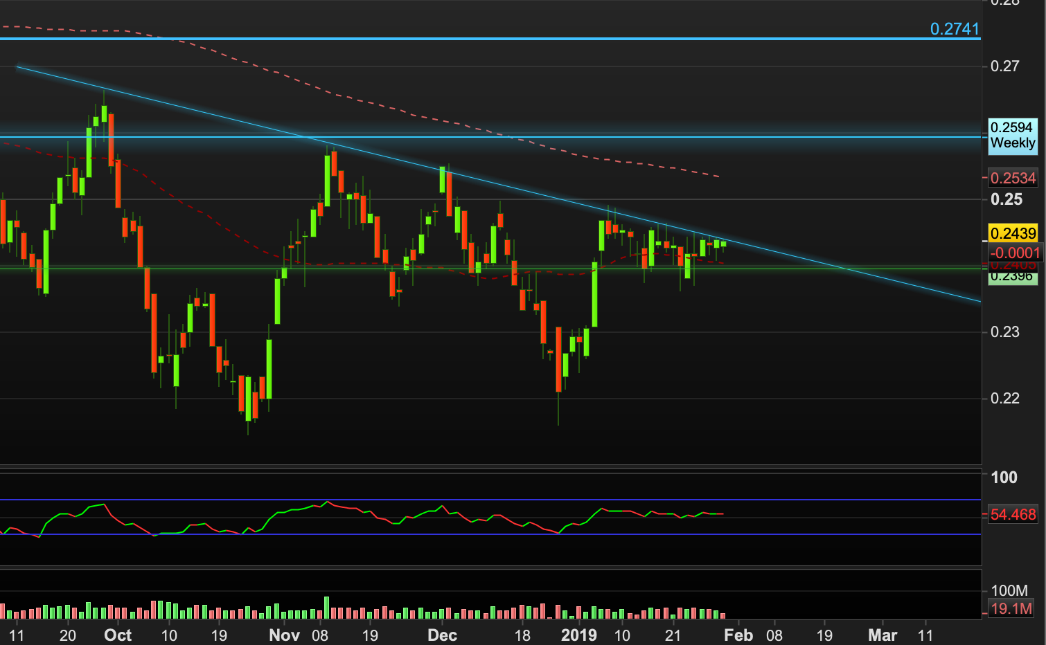 Venda colocada a 0,2395. Objectivo: 1%%.