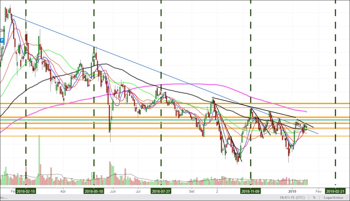 No gr´áfico podemos ver que antes dos resultados em 2018 subia e após estes descia, na minha análise o comportamento da acção nos próximos resultados será diferente, vai descer até 21/2 e após resultados subir de forma significativa pelo menos até aos 0.26, caso a acção não chegue aos 0,26 o mais tardar em março teremos seguramente algo importante e negativo acontecer no bcp , como todos têm opinado aqui uns de uma forma mais elevada a falar em PER outros de forma mais direta, existe unanimidade que com estes resultados líquidos uma cotação inferior a 0,26 está longe dos fundamentos, reforçando ainda que a equipa de gestão aponta o ano de 2019 para resultados superiores a 500M.