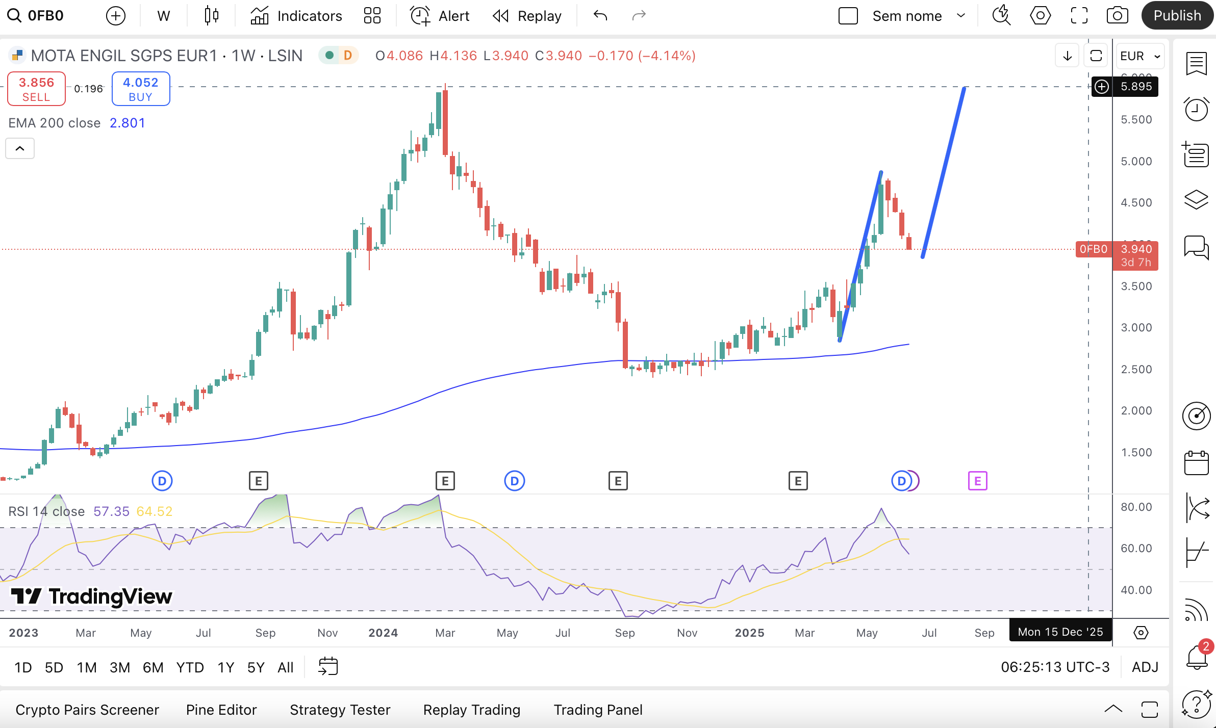 depois, paulatinamente, tentará superar os € 5,90, para fazer novos máximos...