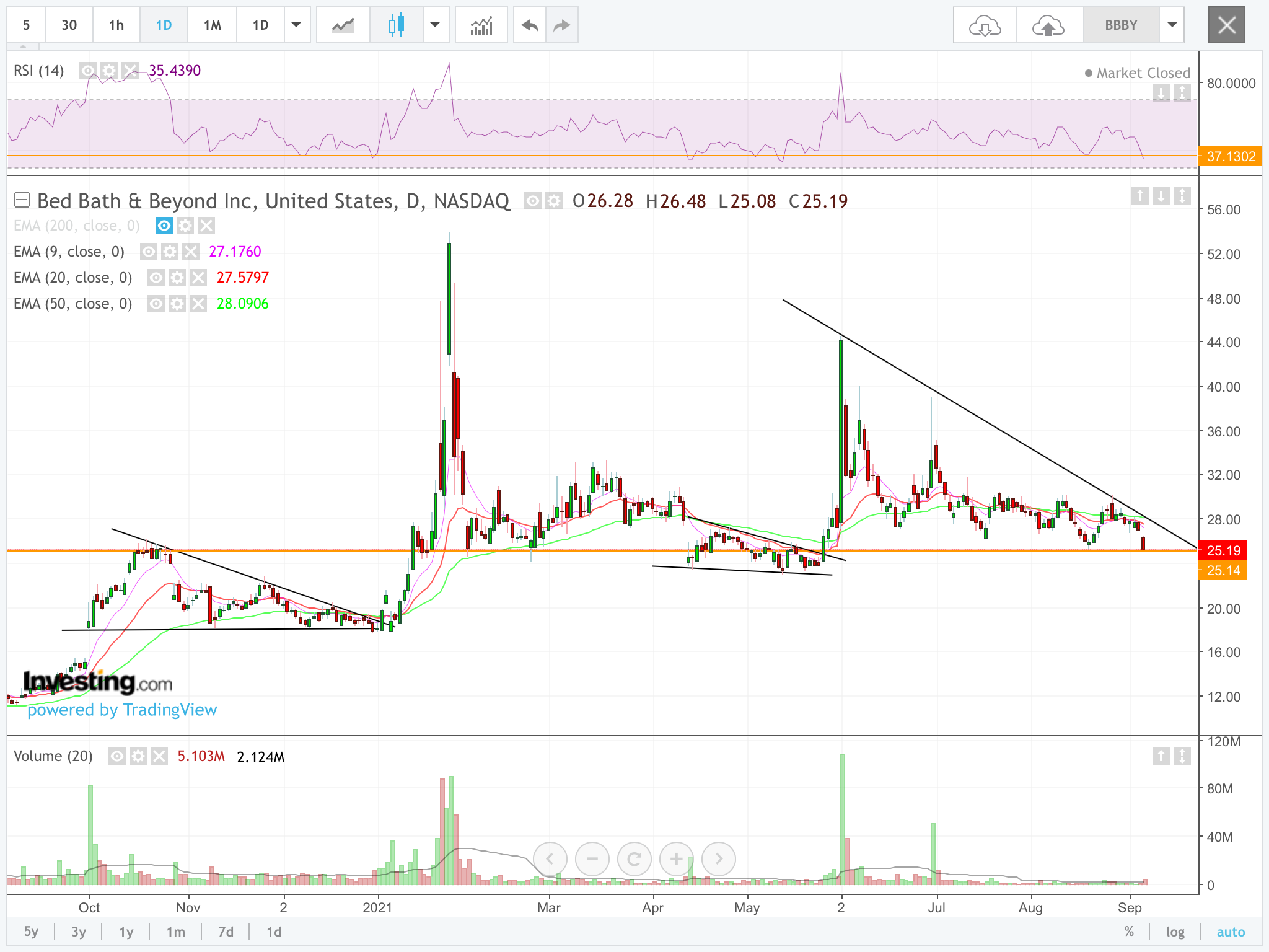A BBBY está novamente num suporte bastante importante, na zona dos $25,20.