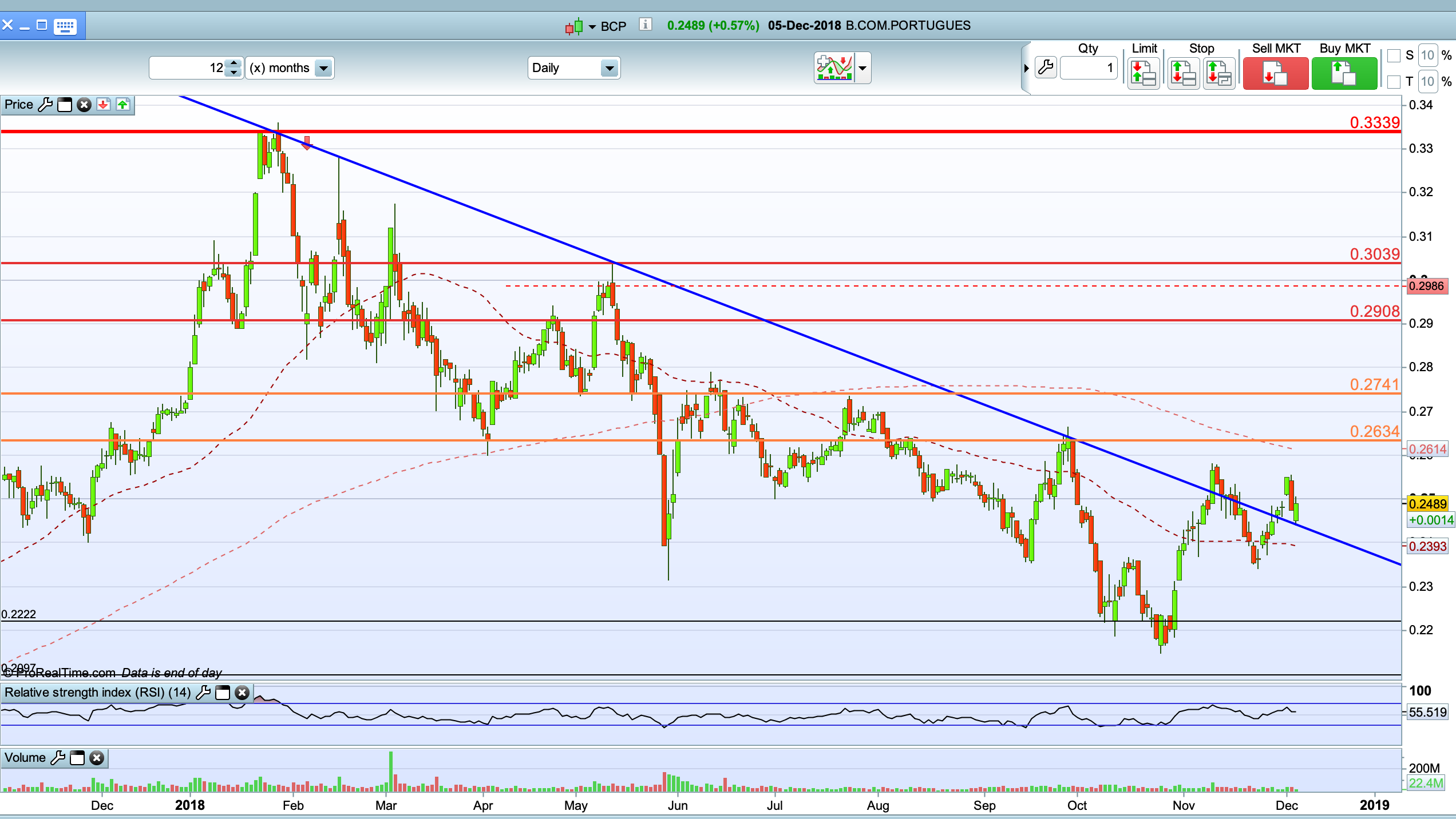 O BCP está 'condenado' a encostar nos 0,26 antes do final do ano depois vai lateralizar e ganhar força para atacar os 0,30 no primeiro trimestre de 2019. O sp500 vai hoje ou amanhã fechar o gap de 23/11 e depois vai subir alguns dias e temos o bcp encostado.