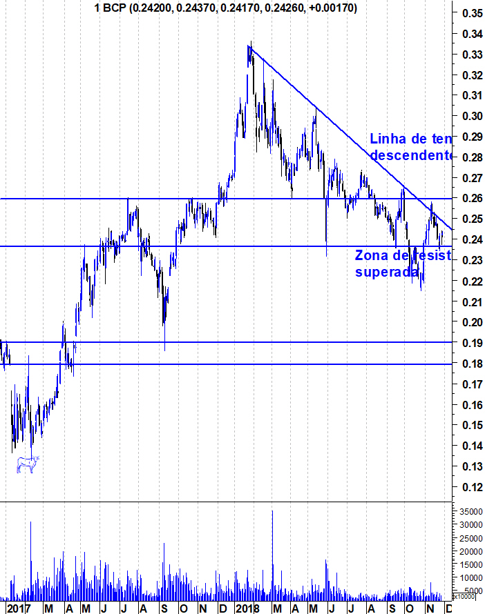 Bcp com touros no comando das operações no curto e longo prazo,no médio prazo pareçe já estar a morder os calcanhares.