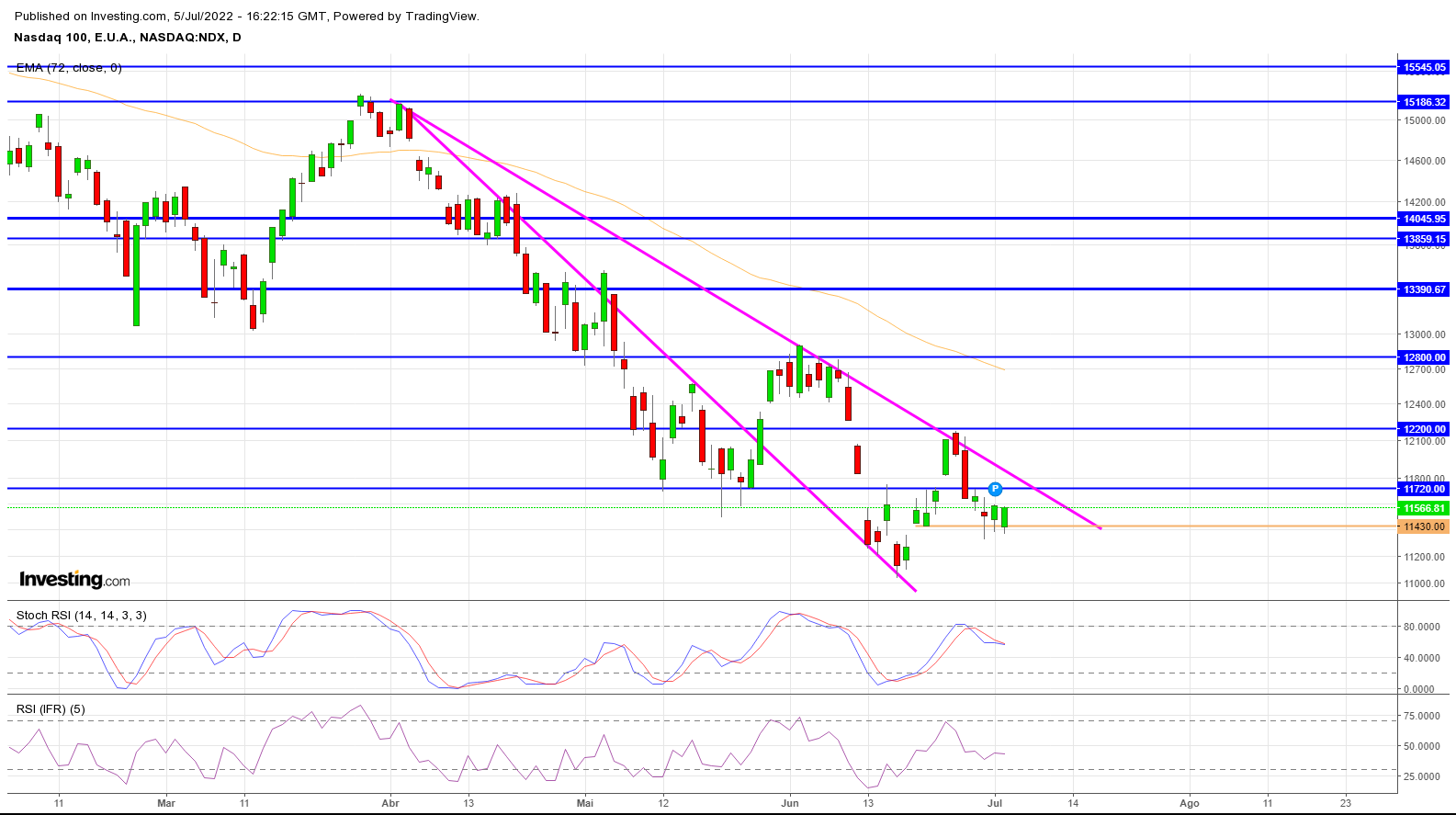 Parece que o nas começa a ficar entalado entre os 11400/11720. A quebra de um dos lados será o click para o próximo movimento. Da minha parte espero que vá para cima.