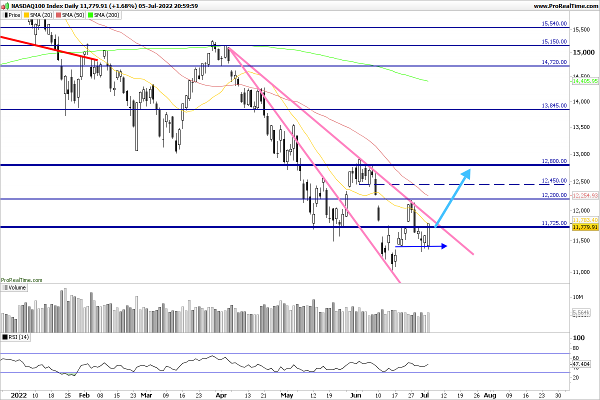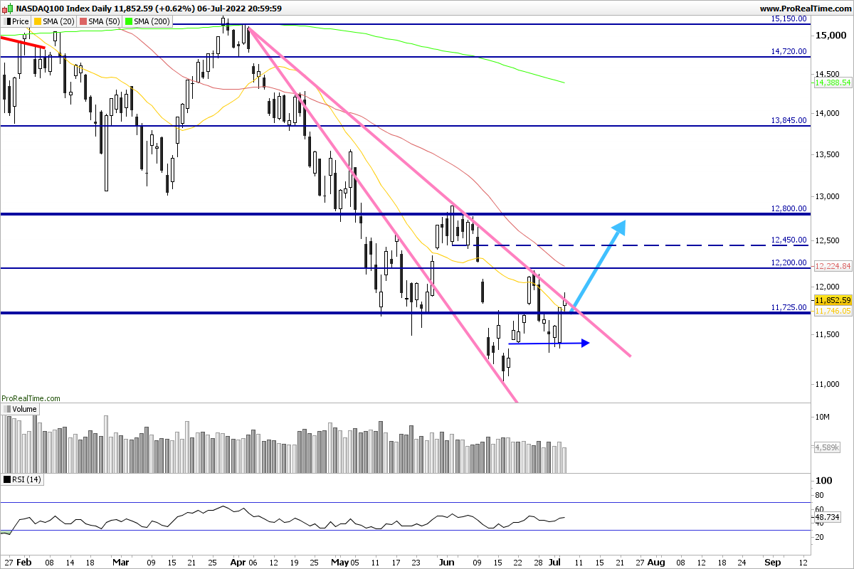 Duas hipóteses em equação, ou rebenta já a resistência dos 12200 ou faz um reteste aos 11720 para ganhar nova força.