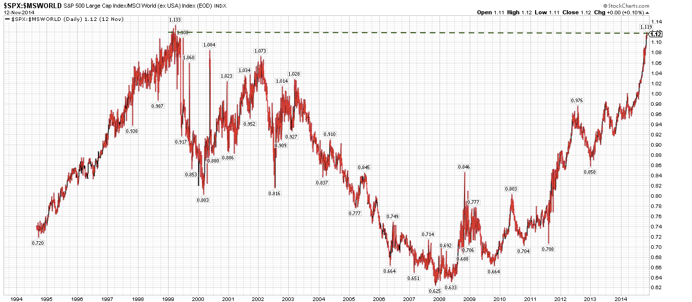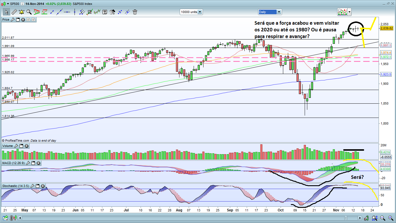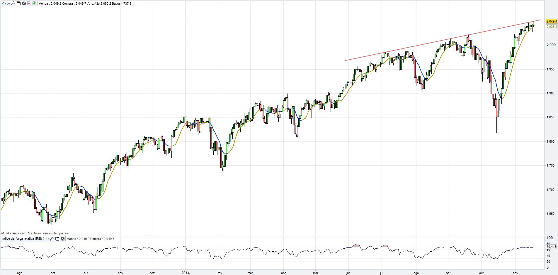 A tendencia primaria está intacta e penso que vai continuar...a falta de alternativas de investimento (bond market saturado), a Dolar a subir, taxas de juro baixas, europa em estagnaçao...penso que vai puxar pelo mercado americano até haver sinais de inversao na China ou Europa! O PER do SP já está em 17...a partir dos 20, já se poderá falar em inicio de bolha!