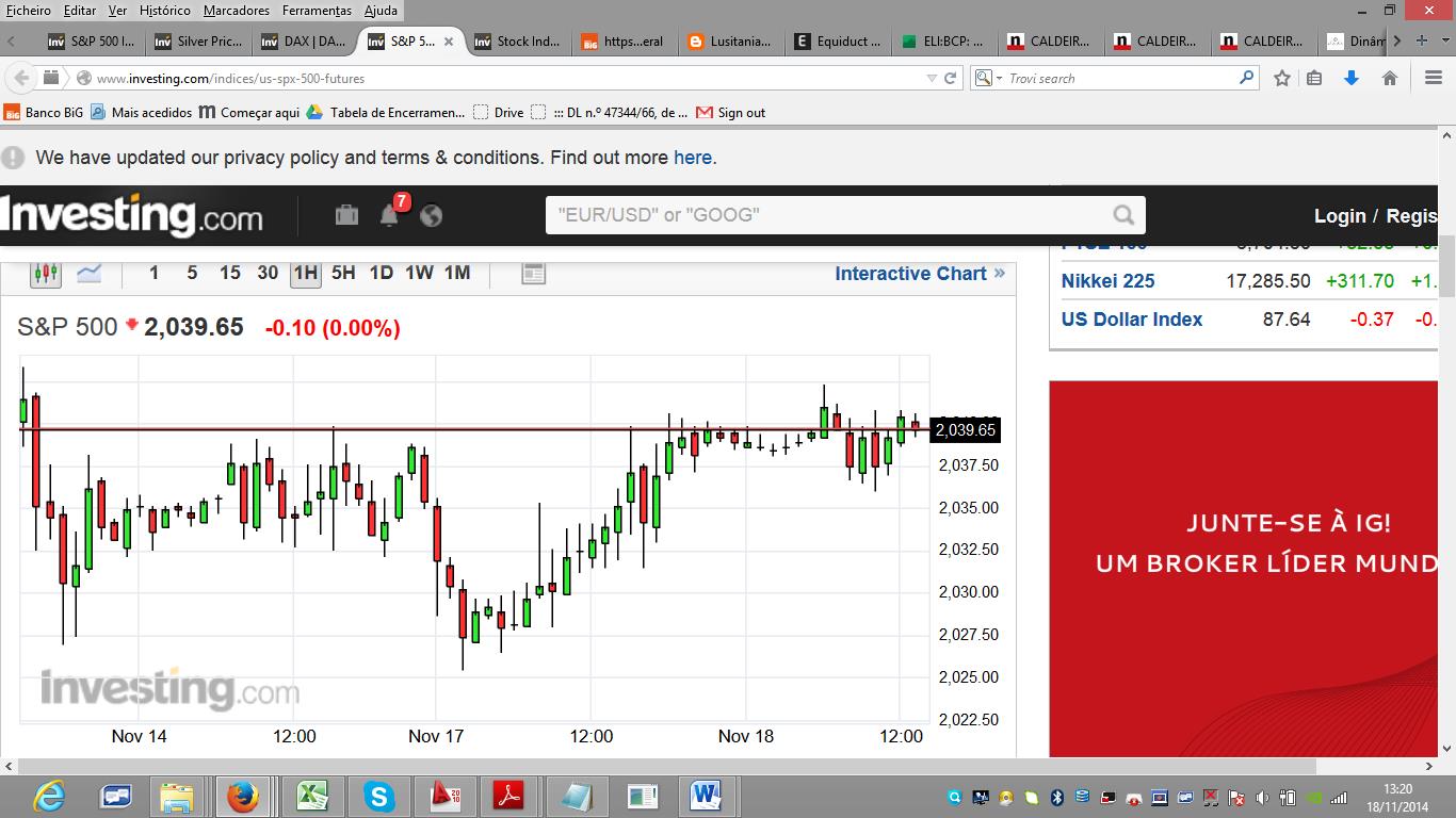 Ficam os bonecos do costume...penso que para a semana pode haver um pequeno retrace...estes 3 ultimos dias...mesmo fazendo maximos nos 2046...fechou ali sempre na zona dos 2040...mais ponto ou menos ponto!