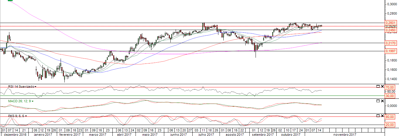 Na minha opinião nesta fase , com esta apatia os 0.26 não vão ser ultrapassados, existindo uma correcção índices , poderá a cotada sofrer correcção mais acentuada, baixando dos pontos fulcrais, acionando stops e vendas .