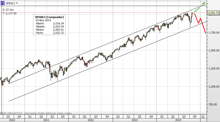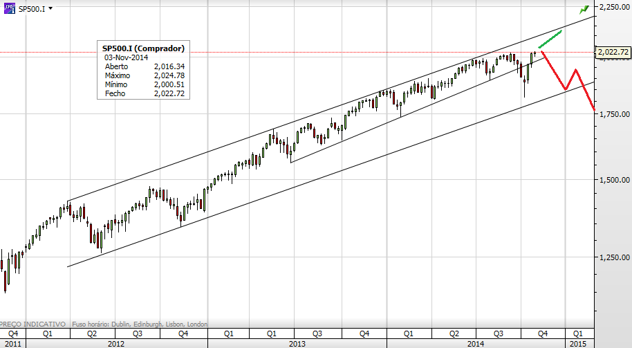 Penso que o SP500 vai ultrapassar nesta e próxima semana, os 2050 (+5 /-5, dando a respectiva margem de erro.), o que é sensivelmente 1,3%.