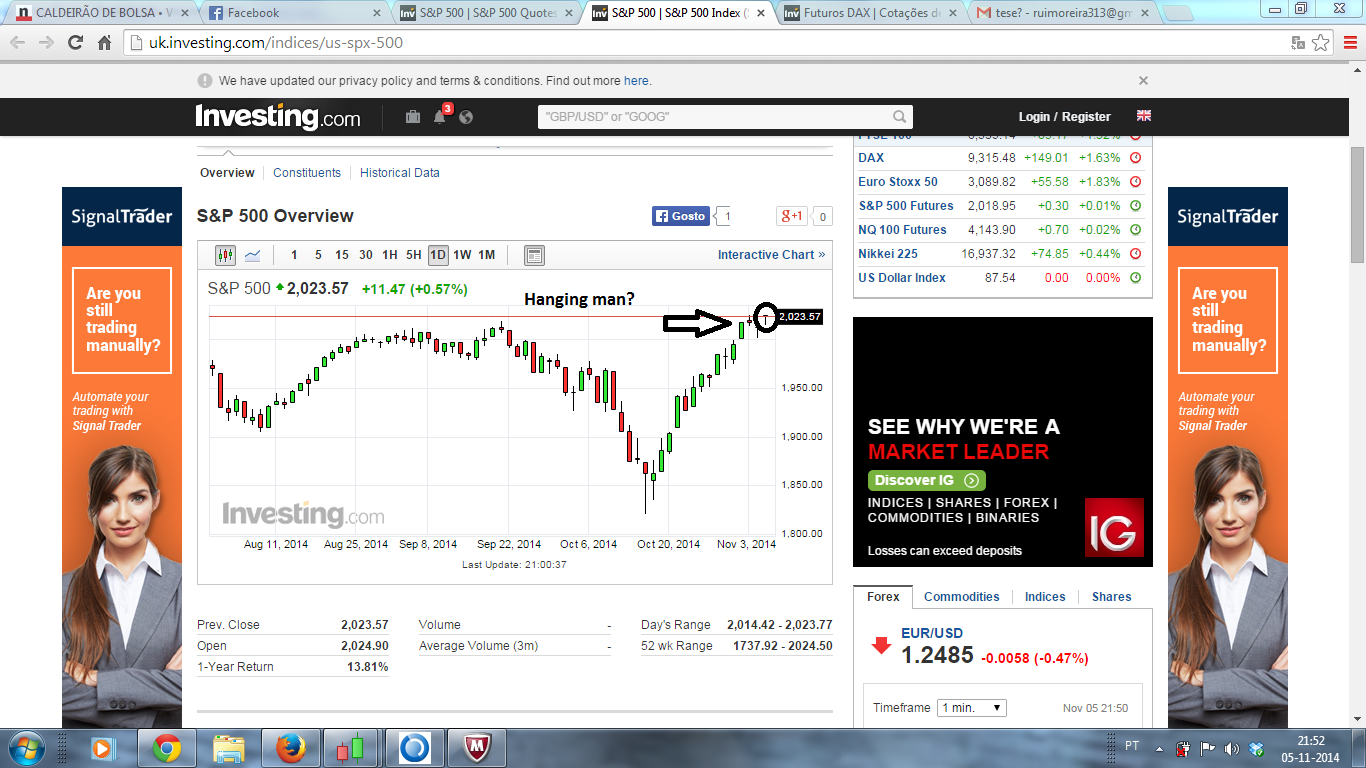 Hoje as 14:30 foi uma hora tramada...tendo entrado longo no DAX antes das 8h nos 9229....estava a olhar para os 9320 como possivel ponto para abrir um curto e no SP500...os 2024!