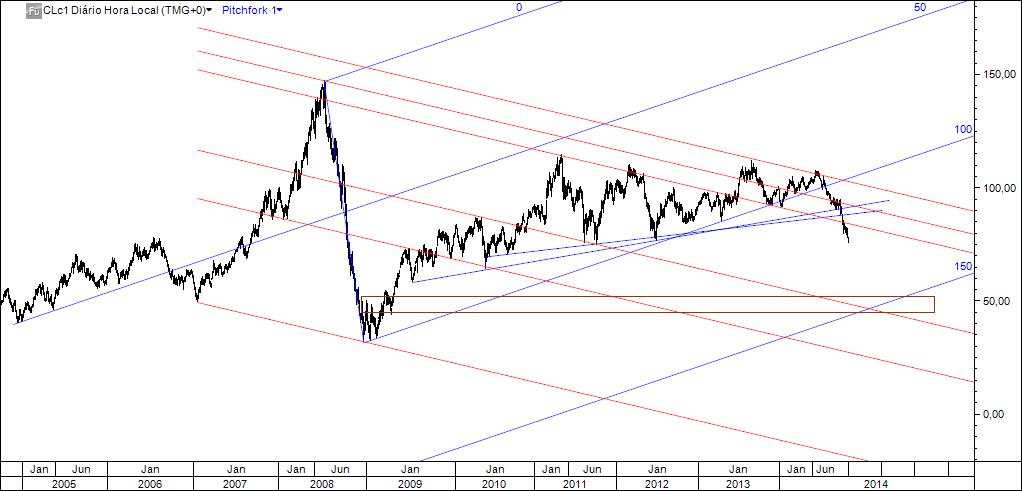 Quanto ao crude, eu tive oportunidade de construir um gráfico, a pedido do forista eurosexy, e salvo erro coloquei-o num outro tópico. Fica agora o mesmo gráfico (também o publicarei no meu tópico porque aqui facilmente se perde no meio de tantas intervenções e como quero "receber alguns louros" pela previsão, caso venha a acertar, será mais fácil encontrá-lo para servir de "prova").