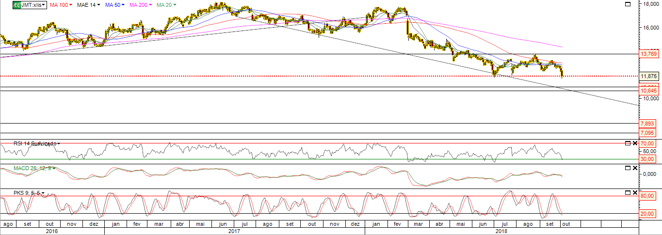 A JMT esta a fazer um recuo técnico perfeito até a EMA 14 nos 11.56 onde já fez hoje máximos e onde fica a resistência dos últimos 12 dias de negociação .
