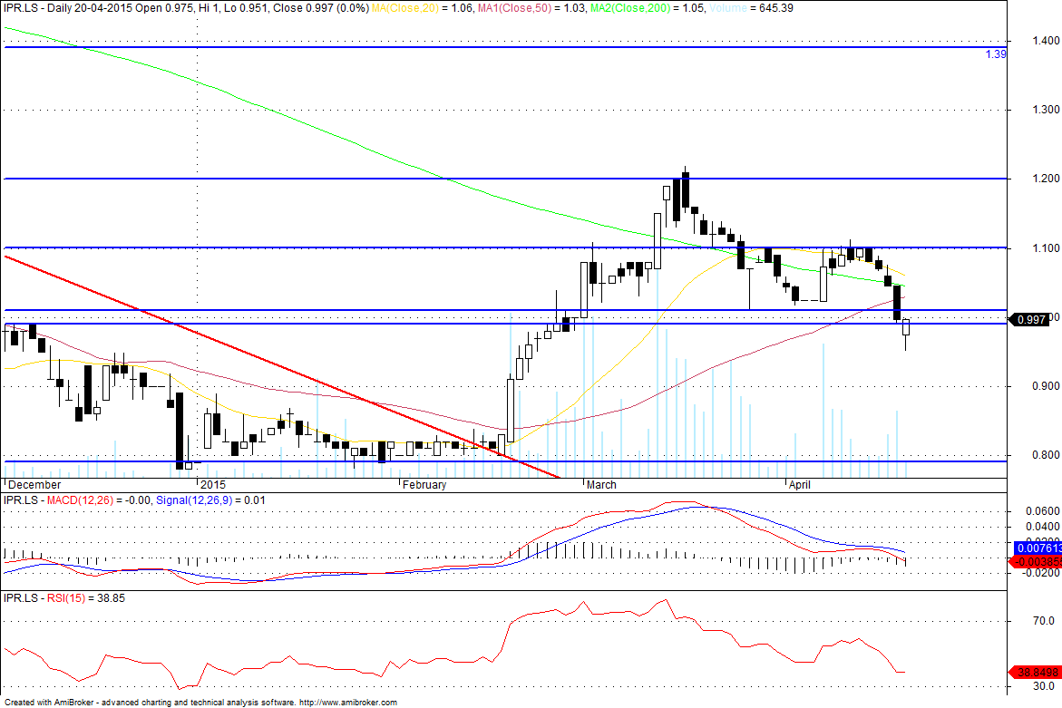 Na minha opinião ela já furou claramente o suporte dos 1.01 e parece-me estar em clara tendência descendente... e penso que o problema desta cotada é essencialmente a falta de liquidez, pois há um mês atrás tudo indicava para uma subida mas ela travou, mesmo após os bons resultados apresentados... Ou então percebi mal os sinais.