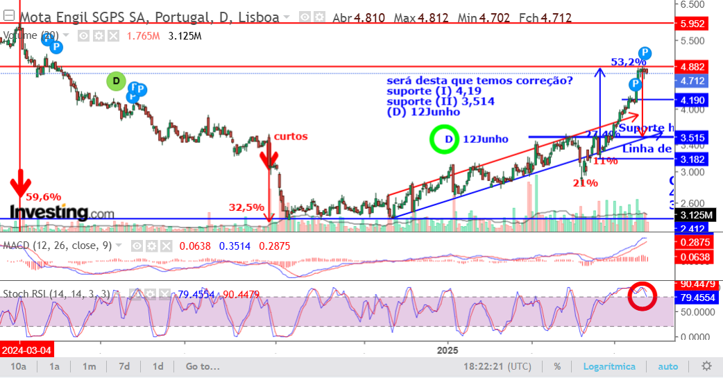 que o RSI da mota no curto prazo aponta para sobre compra é um facto. a partir daí, cada um define a estratégia que bem entender.