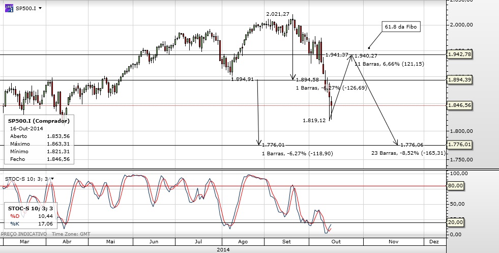 Olhando numa escala mais alargada, acredito numa subida partir deste suporte, talvez até aos 1900. E porquê? O dow , se realmente fez uma Cunha ascendente quebrada para baixo, vai tentar testa-la. Por norma, tenta sempre testa-la antes de continuar as quedas.